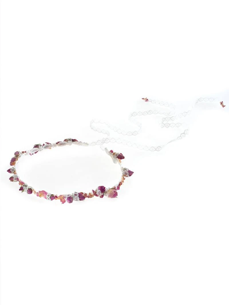 Materiaal: Echte roosjes op kanten lint