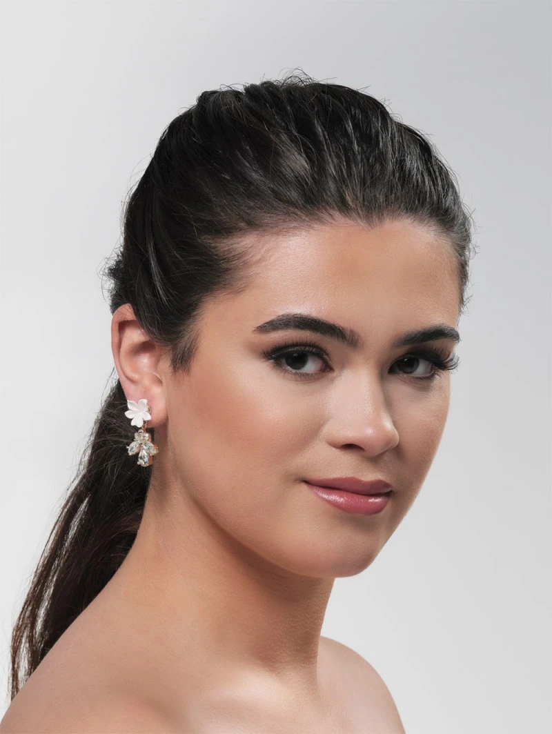Details: oorbellen van porseleinen bloemen en strass