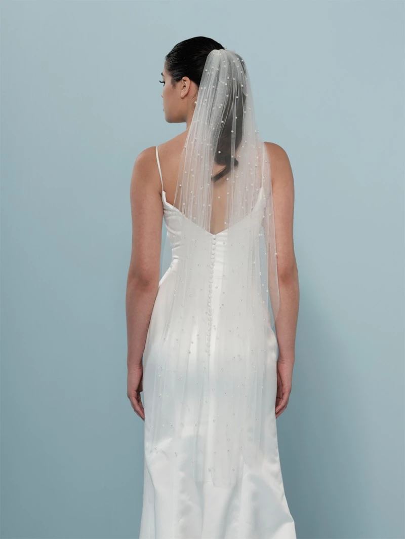 Sluierversiering: versierd met ivoorkleurige parels