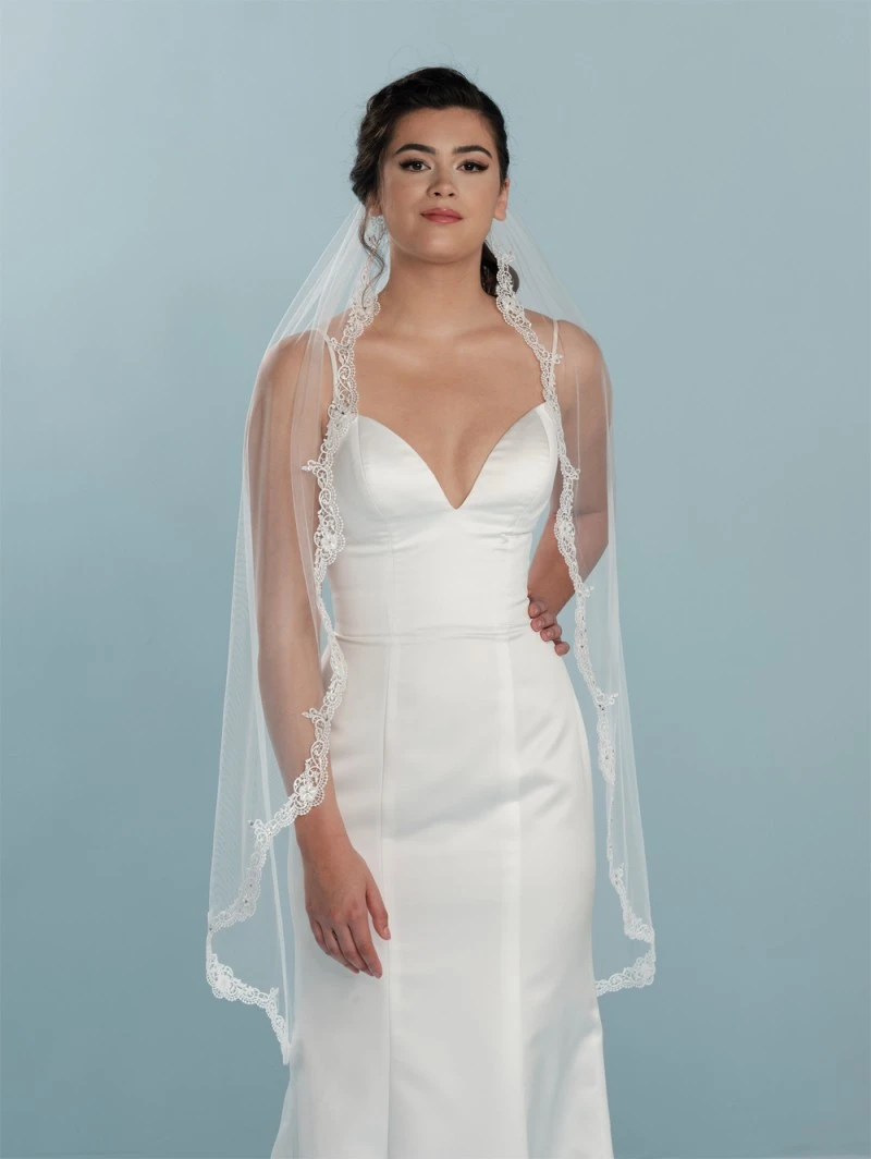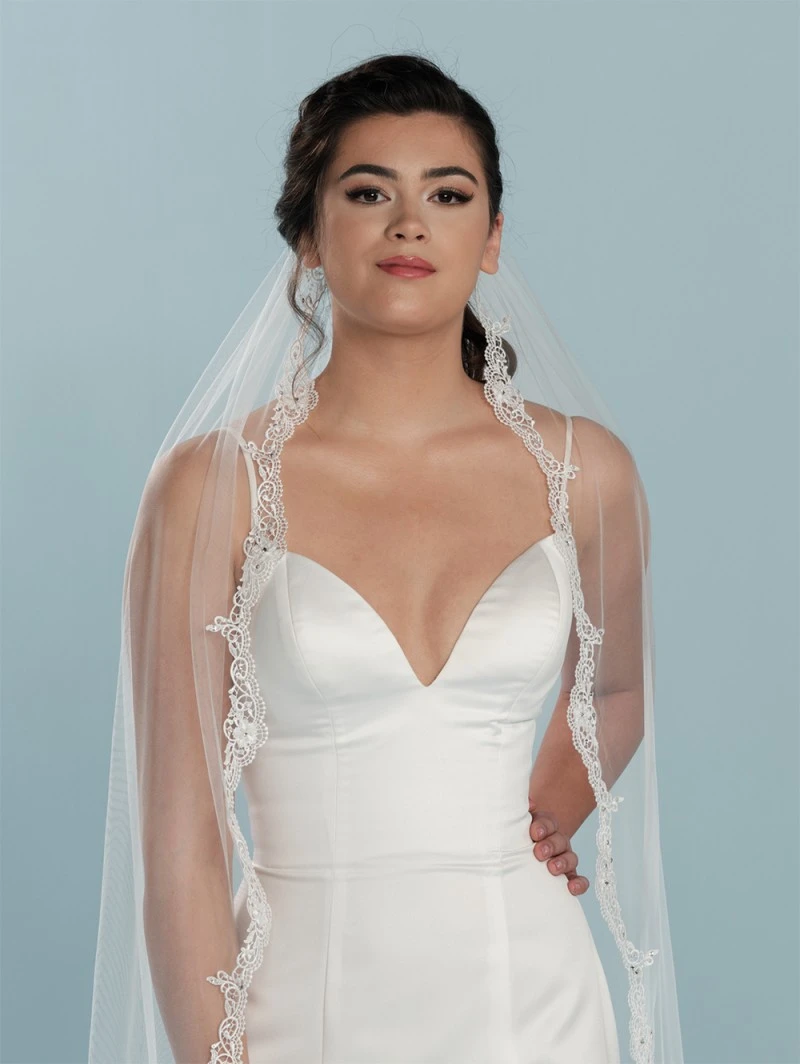 Sluierrand: met geborduurd kant, parels, pailletten en strass-steentjes