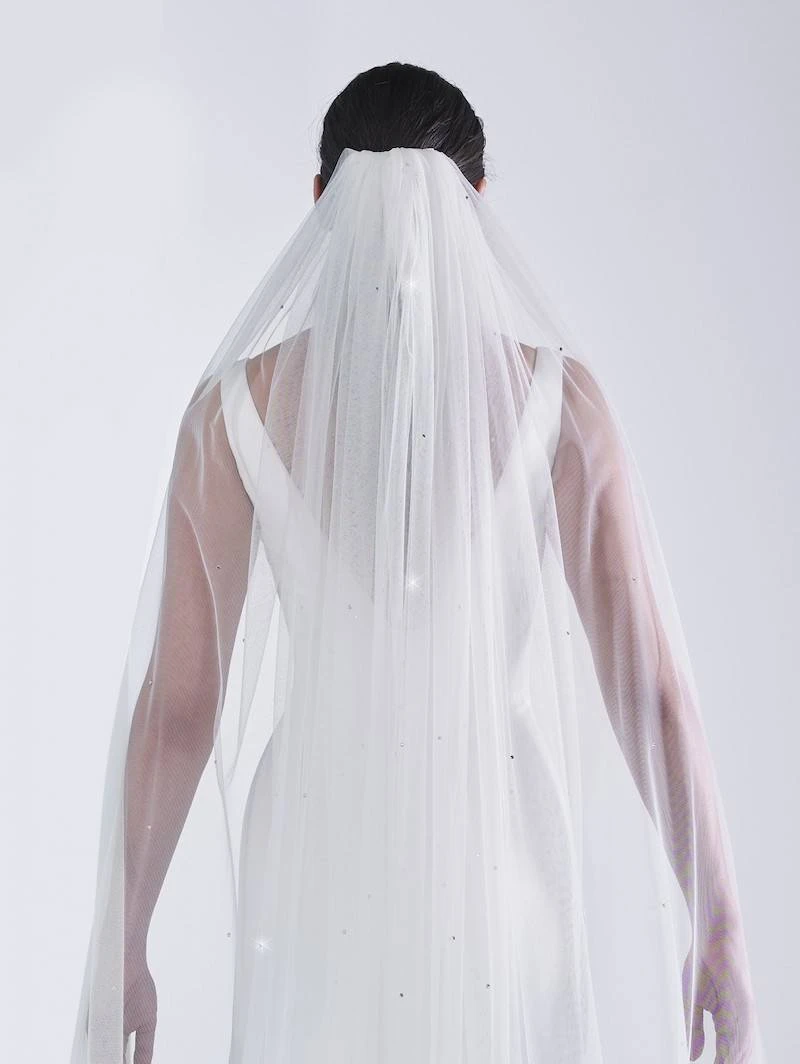Materiaal: Soft-sluiertule, strasssteentjes