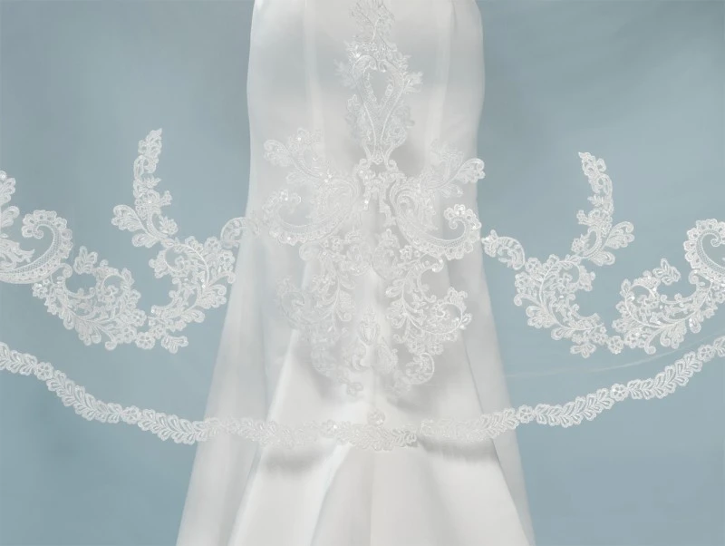 Sluierrand: luxe kantborduurwerk en pailletten